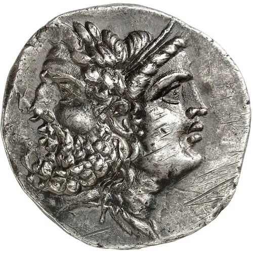 | Obverse description | Janiform head composed of a laureate and bearded head of Zeus to left and a diademed head of Hera to right. |