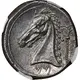 | Mô tả mặt sau | Head of horse left; palm tree to right; MM (in Punic) below. |