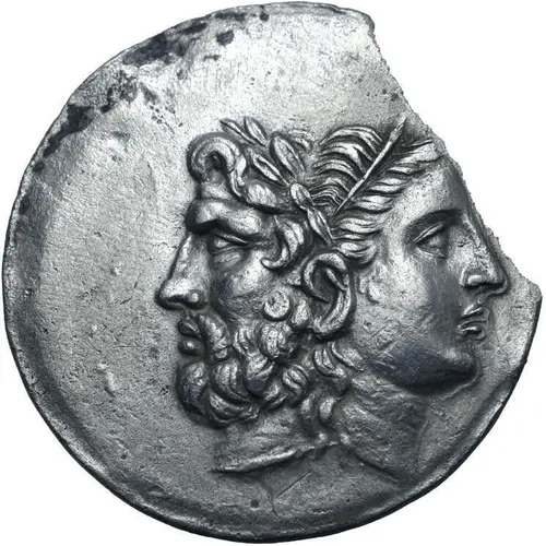 | Obverse description | Janiform head composed of a laureate and bearded head of Zeus to left and a diademed head of Hera to right. |