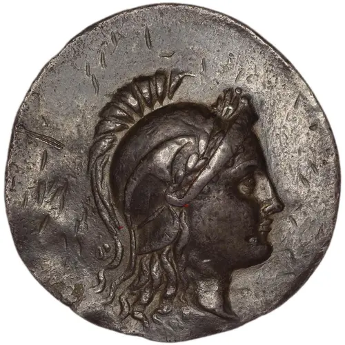 | Obverse description | Head of Athena right, wearing triple-crested Corinthian helmet wreathed with laurel. |