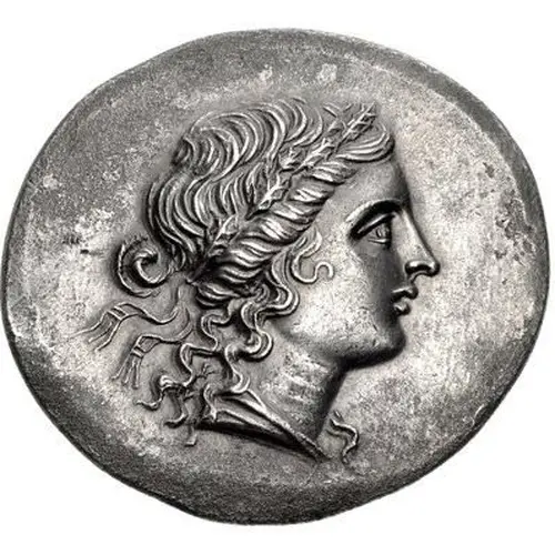 | Obverse description | Head of Kore Soteira right, wearing oak wreath. |