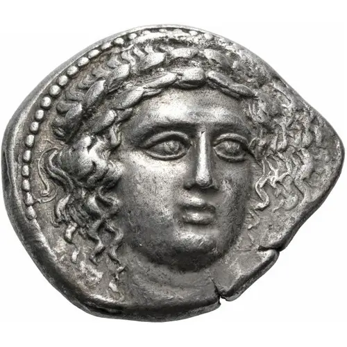 | Descrição do anverso | Laureate head of Apollo, three-quarters facing to right. |
