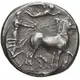 | Obverse description | Charioteer driving walking quadriga right, holding kentron in right hand, reins in both. Above, Nike flying right, crowning horses with laurel wreath she holds with both hands |