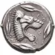 | Reverse description | Head of roaring lion facing right with four barley grains around it. Inscription split in four, around the lion`s head. |