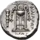 | Mô tả mặt sau | Tripod with three tall rings ornamented with fillets. Above, laurel branch to right and to the left, a club upwards. In exergue the letters ΗΡΑ |