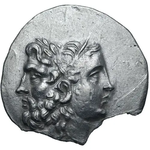 | Descrizione del dritto | Janiform head composed of a laureate and bearded head of Zeus to left and a diademed head of Hera to right. |