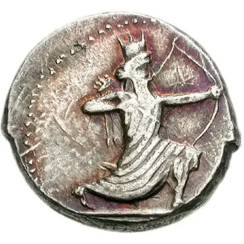 | Obverse description | Persian king or hero in kneeling-running stance right, drawing bow. |
