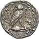 | Reversbeschreibung | Owl standing right, head facing, on amphora; in right field, bull butting right. All within olive wreath. |
