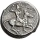 | Reverse description | Bearded, man-faced bull (the river-god Gelas) kneeling to right; beneath, CΕΛΑΣ. |