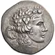 | Descripción del anverso | Head of youthful Dionysos to right, wearing taenia and ivy wreath, and with his hair partially knotted into a queue and partially falling down the back of his neck. |
