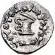 | Obverse description | Serpent atop cistica mystica, surrounded by ivy wreath. |