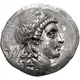 | Opis rewersu | Apollo Grynios standing right, holding branch and phiale; monogram to left, omphalos and amphora at feet; all within laurel wreath. |