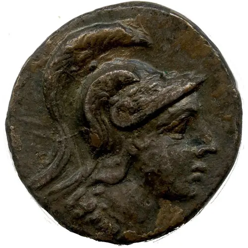 | Obverse description | Head of Athena right, wearing necklace and triple-crested Corinthian helmet wreathed with laurel. |