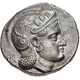| Obverse description | Head of Athena right, wearing earring and crested Attic helmet decorated with three olive leaves over visor and a spiral palmette on the bowl; monogram to left. |