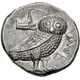 | Reverse description | Owl standing right, head facing; to upper left, prow of galley right; AΘE to right. |