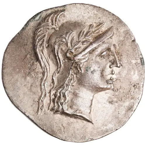 | Descrizione del dritto | Head of Athena to right with Attic helmet, decorated with laurel wreath. |