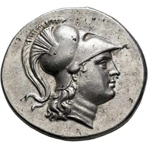 | Ön yüz açıklaması | Head of Athena to right, wearing crested Corinthian helmet. |