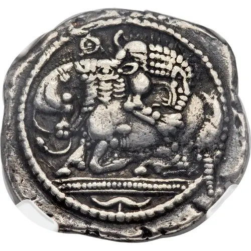 | Obverse description | Lion attacking bull, stylised acanthus flower below dotted line |