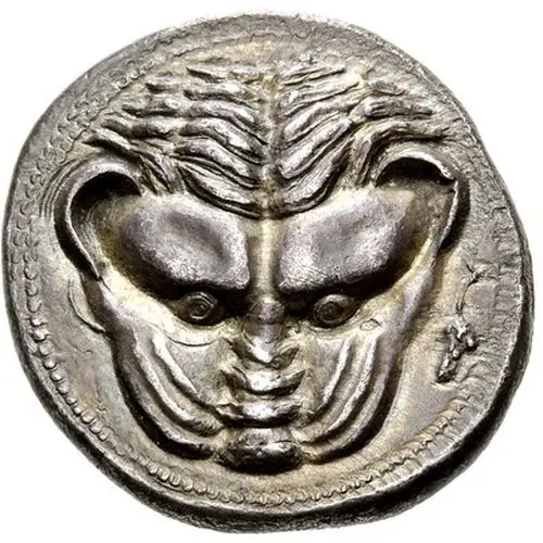 | Obverse description | Lion’s mask facing and to right, bunch of grapes |