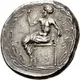 | Reverse description | Iocastos, nude to the waist and holding a staff in his right hand, seated left on a stool. All within a laurel wreath |