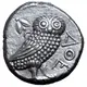 Reverse description Owl standing right, head facing; olive sprig and crescent behind, AΘE before.