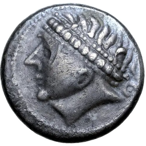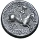 Reverse description Horseman to right, brandishing spear in right hand. Annulet below.