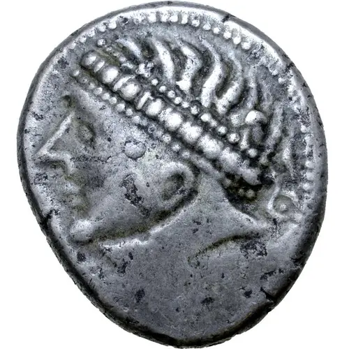 | Obverse description | Diademed male head to left. |