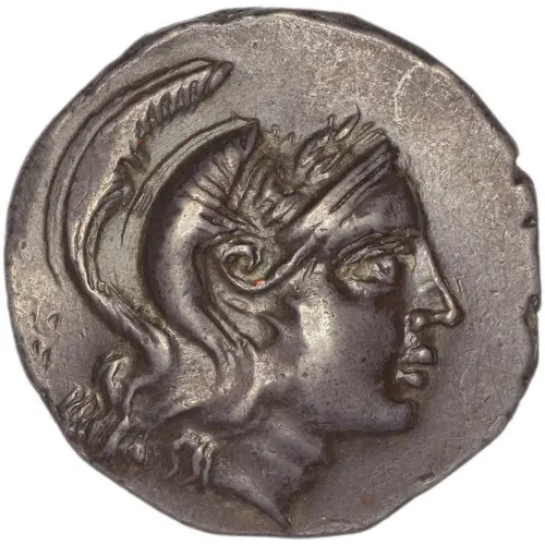 | Obverse description | Head of Athena to right with Attic helmet, decorated with laurel wreath. |