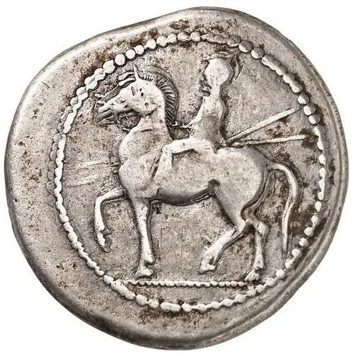 | Popis líce | Mounted horseman left, carrying two spears. |