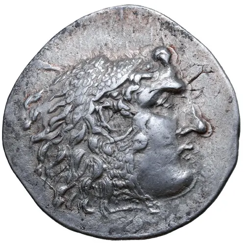 | 表面の説明 | Head of Herakles to right, wearing lion skin headdress. |