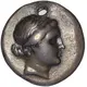 | Obverse description | Head of the nymph Cyme right, hair bound with taenia. |