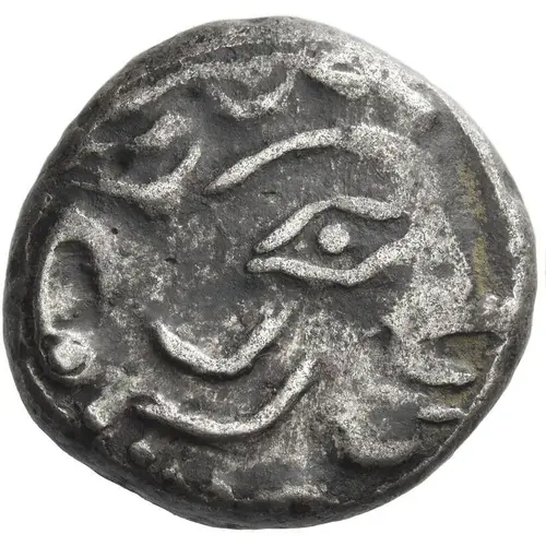 | Obverse description | Stylized helmeted bust of Athena right, two crescents on cheek below eye. |