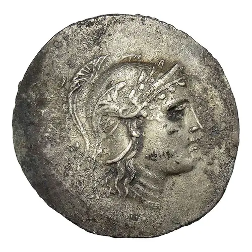 | Aversbeschreibung | Head of Athena to right with Attic helmet, decorated with laurel wreath. |