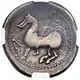 | Arka yüz açıklaması | Horseman riding left; circle of pellets (wreath) above, branch below. |