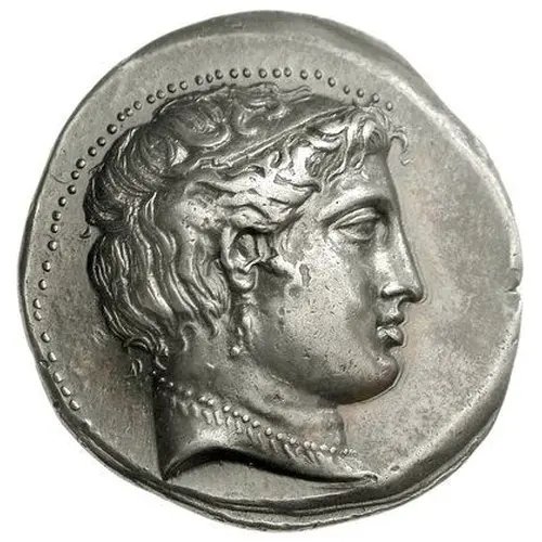 | Obverse description | Head of Aphrodite right, wearing necklace, earring and stephane; dotted border. |