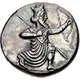 | Arka yüz açıklaması | Prow of galley right, with hornlike akrostolion, fighting platform decorated with labrys, proembolon (upper battering ram) decorated with dolphin and an embolom (principal three pronged battering ram); wave pattern below; to right, small dolphin diagonally downward right. |