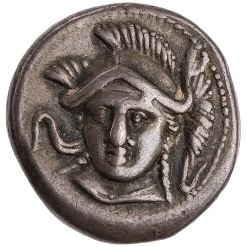 | 表面の説明 | Head of Athena facing slightly to left, wearing a triple-crested Attic helmet. |
