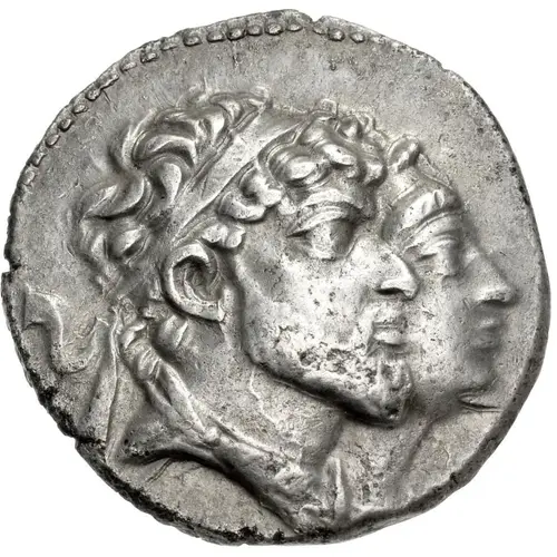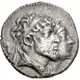 Conjoined busts of Bellaios, diademed and wearing short beard, and Amatbene, draped and wearing stephane, right. |