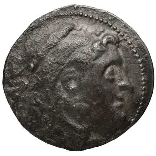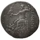Zeus seated on stool-throne left, eagle on outstretched right hand, sceptre in left hand; in left field sphinx seated left on horizontal amphora and in exergue magistrate name. |