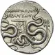 | Obverse description | Cista mystica with snakes, inside wreath of ivy and flowers. |