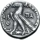 | Описание реверса | Eagle standing left on thunderbolt. L IB (Kleopatra`s RY 12) over Θ (Ptolemy`s RY 9) before; ΠA behind. |