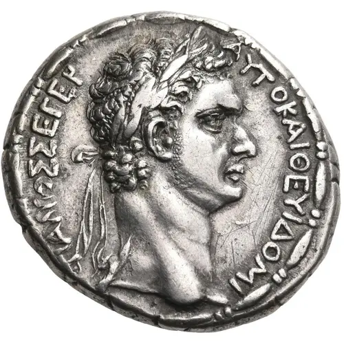 | Reverse description | Goddess Tyche of Tarsus seated right, wearing mural crown, holding palm branch in right hand. River god Kydnos below, wearing wreath of water plants. |