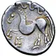 | Descripción del reverso | Horse prancing left; spiral ornament above |