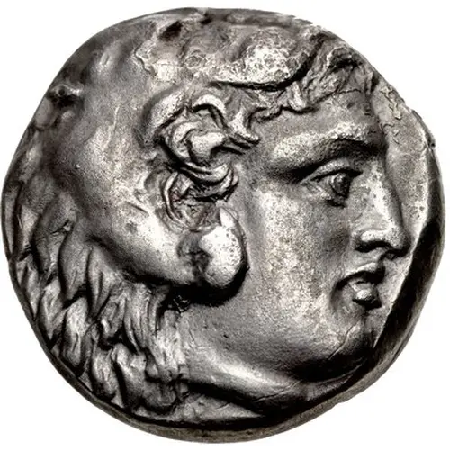 | Ön yüz açıklaması | Bearded head of Herakles right, wearing lion skin |