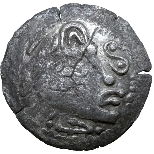 | 表面の説明 | Celticised head of Herakles to right, wearing lion skin headdress; S-form ornament before. |