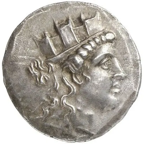 | توضیحات روی سکه | Turreted head of Tyche facing right. |