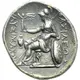 | Popis rubu | Athena seated left, holding Nike, crowning the king`s name, in her right hand and leaning with her left arm on shield decorated with lion`s head; behind, transverse spear; in inner left field, amphora. |