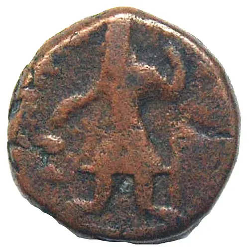 | Obverse description | King standing left beside altar, holding trident. Bactrian legend. |