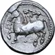 | Reverse description | Stylised rider wearing crested helmet to left; quadruped animal (cat?) before. |