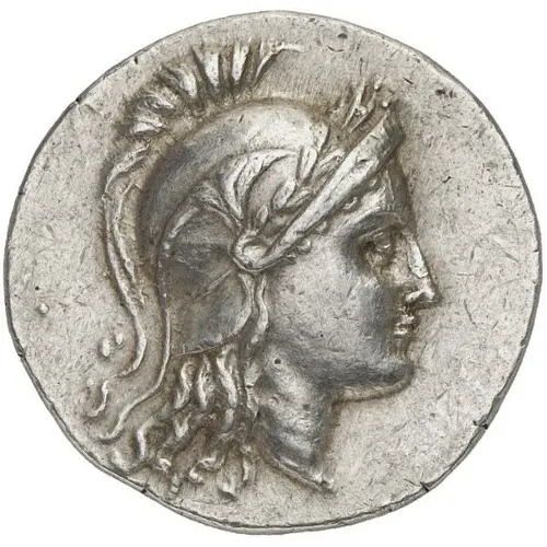 | 正面描述 | Head of Athena right, wearing triple-crested Corinthian helmet wreathed with laurel. |